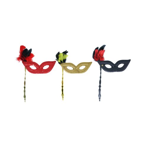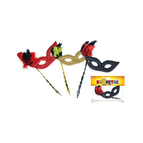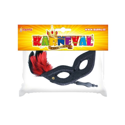 Elegantní škraboška se zlatým držátkem je zdobena hebkým peřím, oslnivými třpytkami a flitry. Staň se tajuplnou hvězdou karnevalového večírku díky této úchvatné škrabošce a ohrom tak všechny své přátele!