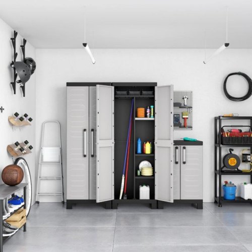 Skříň Keter Detroit High obsahuje celkem 4 přídavné police, které maximálně zpřehlední organizaci vnitřního prostoru. Každá z nich využívá bezpečnostní pojistku SLO pro snadné výškové přizpůsobení a rovněž nabízí maximální nosnost až 15 kg, což přijde vhod pro výrazně těžší předměty všeho druhu. V útrobách skříně tak pohodlně uchováte i rozličné dílenské a zahradní nářadí, které by se jinam nevešlo. Velkou výhodou produktové řady Keter Detroit je také jednotný spojovací systém, díky kterému vytvoříte kompletní skříňovou stěnu pro všestranné využití dle vašich potřeb a preferencí.