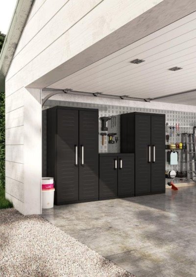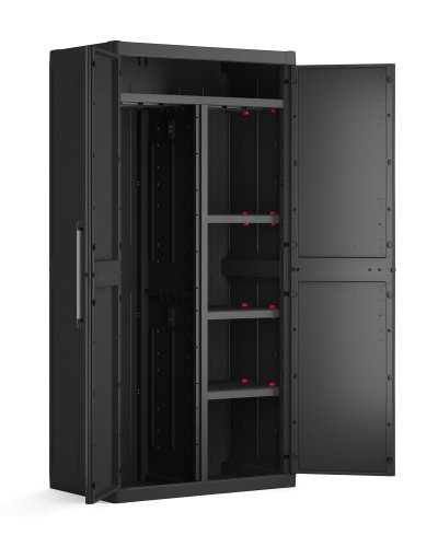 Skříň obsahuje celkem 4 přídavné police - každá s výraznou nosností až 15 kg, které přijdou vhod pro výrazně těžší předměty všeho druhu. Lze ji tedy využít pro skladování dílenského nářadí či zahradnických potřeb, kdy přijde vhod pro uložení náčiní s dlouhou násadou, které by se jinam nevešlo. Díky svému provedení v neutrální černé barvě zapadne do každého prostoru bez ohledu na jeho konceptuální styl.