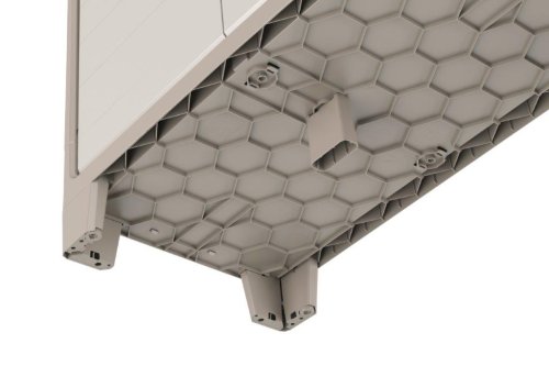 Skříň je vyrobena z kvalitního plastu s ochranou proti UV záření, proto se nemusíte bát vyblednutí barev ani deformace materiálu při vystavení slunečním paprskům. Voděodolnost s certifikací IPX3 zajišťuje ochranu před stříkající vodou, což oceníte hlavně v garáži nebo na kryté terase.