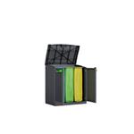 Skříň Keter Moby Compact Store umožňuje přehledné třídění až tří druhů odpadu. Každá komora pojme standardní pytel o objemu 110 litrů. Horní víko slouží k vhazování, čelní dveře umožní snadný přístup k plným pytlům. Box se hodí nejen pro papír, plasty a sklo, ale také pro biologický nebo komunální odpad.
