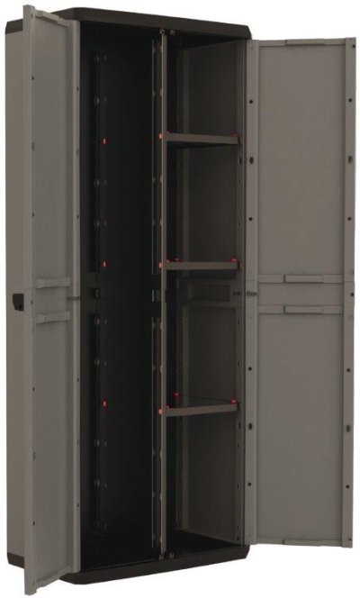 Skříň Keter Piú Utility nabízí praktické řešení pro přehledné uskladnění nářadí, čisticích pomůcek nebo zahradního vybavení. Díky kombinovanému vnitřnímu prostoru poskytuje nejen místo pro menší předměty, ale také pro dlouhé náčiní jako jsou smetáky nebo hrábě.