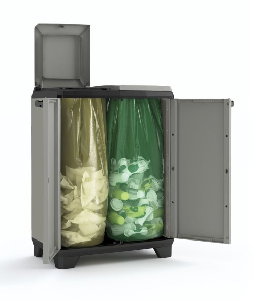 Schovejte odpadkové pytle do skříňky v neutrální šedé barvě, která se bude hodit téměř do jakéhokoliv prostoru a takřka ke každému stylu. Obruče drží pytle na místě a usnadní třídění odpadu ve vaší domácnosti. Konstrukce poskytuje skříni zvýšenou odolnost vůči prachu, vlhkosti, vodě, rzi, hnilobě či hrubému zacházení. Skříň je vyrobená z 80 % z recyklovaných materiálů. Zabudovaný podlahový panel chrání obsah skříně proti vodě, bahnu, prachu a dalším nečistotám. Díky možnosti uzamčení ochráníte veškeré uschované cennosti před odcizením, tudíž bude vnitřní obsah v naprostém bezpečí za každé situace.