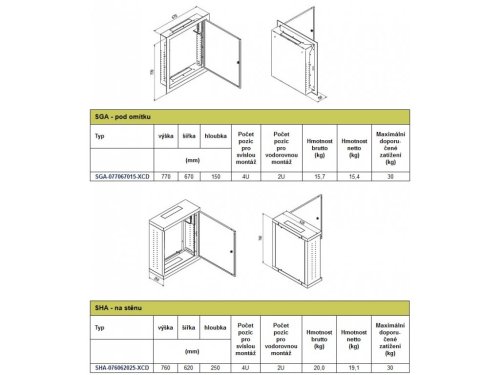 Rekonstruujete dům a sháníte vhodnou rozvaděčovou skříň? Pořiďte si hybridní rozvaděč Triton 4U/2U s roztečí 19” a rozměry 770 x 670 x 150 mm. Plechové dveře s tloušťkou 1 mm můžete bezpečně zamknout. Díky perforacím v nich je vnitřní prostor skříně dobře větraný. Rozvaděč má krytí IP20/IK07. Namontujete ho přímo na zeď, případně do připraveného otvoru ve zdi. Hmoždinky, šrouby a podložky jsou součástí balení. Maximální zatížení rozvaděče je 30 kg, u dveří 4 kg.