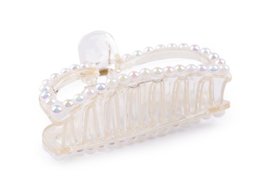 Skřipec do vlasů s perlovým designem vytvoří poutavý slavnostní účes během chvilky. Drží přesně na místě díky svému silnému stisku a dlouhým zubů. Má lesklý perlový povrch s AB efektem.