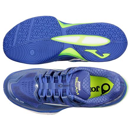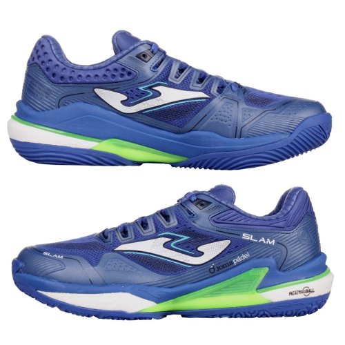 Nový Slam model značky JOMA na padel a tvrdé povrchy je určený pro pravidelné a náročné hráče. I nadále si zachovává maximální úroveň přilnavosti, ochrany, stability a odpružení. Svršek je vyrobený z prodyšné síťoviny, která má elegantní žakárovou úpravu s VTS perforací. Tato technologie umožňuje cirkulaci vzduchu a zajišťuje tak správnou ventilaci. Díky použitým technologiím SPORTECH a PROTECTION je bota lehká, flexibilní a odolná. Mezipodešev má nový tvar, i když stále obsahuje technologii DUAL REACTIVE, složenou z horního phylonu a spodního REACTIVE BALL. Dosahuje dokonalé rovnováhy mezi odpružením, reaktivitou a stabilitou, kterou posiluje díl STABILIS. Všestranná podešev z pryže DURABILITY, tvořená malými kruhovými výstupky pro zlepšení odolnosti na tvrdém povrchu. Usnadňuje skluzy během rychlé hry. Zahrnuje geometrickou strukturu ROTATION pro usnadnění otáčení.