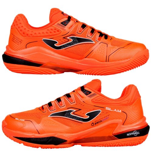 Nový Slam model značky JOMA na padel a tvrdé povrchy je určený pro pravidelné a náročné hráče. I nadále si zachovává maximální úroveň přilnavosti, ochrany, stability a odpružení. Svršek je vyrobený z prodyšné síťoviny, která má elegantní žakárovou úpravu s VTS perforací. Tato technologie umožňuje cirkulaci vzduchu a zajišťuje tak správnou ventilaci. Díky použitým technologiím SPORTECH a PROTECTION je bota lehká, flexibilní a odolná. Mezipodešev má nový tvar, i když stále obsahuje technologii DUAL REACTIVE, složenou z horního phylonu a spodního REACTIVE BALL. Dosahuje dokonalé rovnováhy mezi odpružením, reaktivitou a stabilitou, kterou posiluje díl STABILIS. Všestranná podešev z pryže DURABILITY, tvořená malými kruhovými výstupky pro zlepšení odolnosti na tvrdém povrchu. Usnadňuje skluzy během rychlé hry. Zahrnuje geometrickou strukturu ROTATION pro usnadnění otáčení.