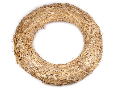 Velký slaměný věnec využijete celoročně k aranžování. [Vyznačuje se autentickým vzhledem spletené slámy, který všude přinese kousek venkovské atmosféry. Jeho přirozená struktura a barva dodávají pocit tepla a útulnosti, ať už jej umístíte kamkoliv.] Můžete kolem něj ovinout stuhu, dozdobit ho květinami i různými sezónními dekoracemi.