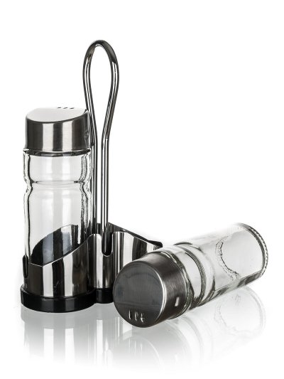 Slánka a pepřenka 40 ml, skleněná, se stojánkem, sklo / nerez.