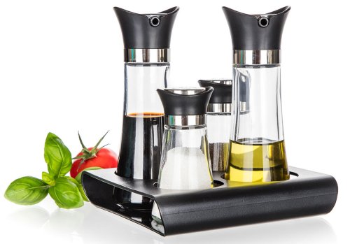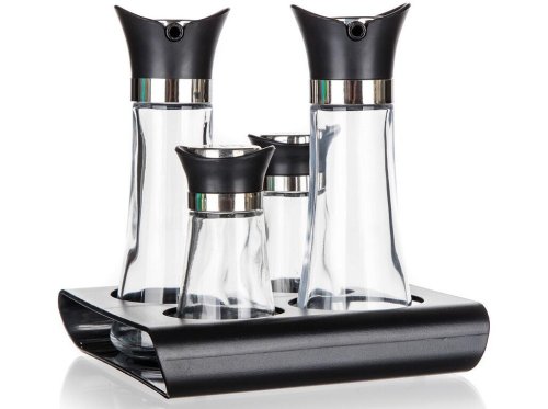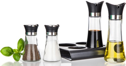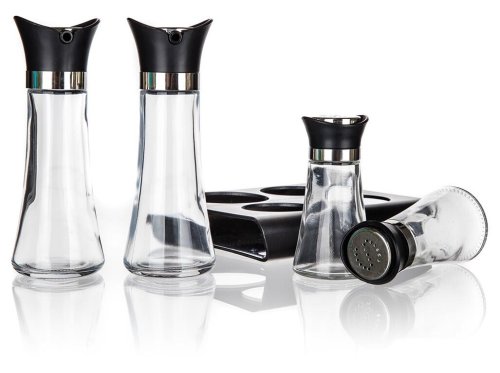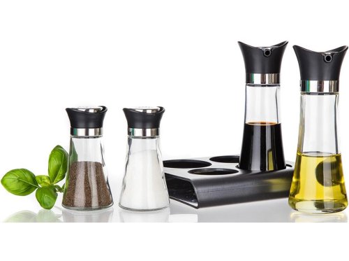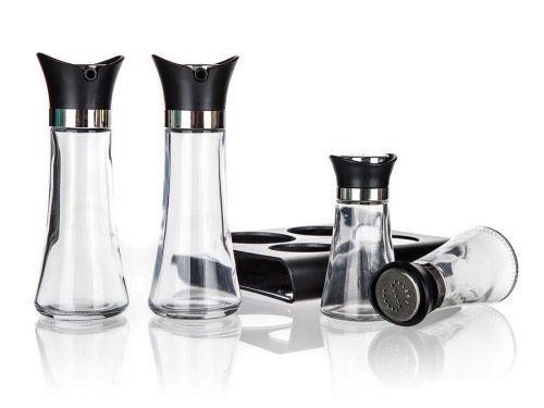 Slánka a pepřenka + nádobka na olej a ocet, skl. / PH, se stojánkem, EXCELLENT (5 ks).