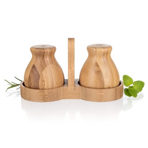 Sada kořenek z přírodního bambusového dřeva obsahuje slánku a pepřenku ve stojánku. Příjemně vám padne do ruky při dochucování. Tuto sadu kořenek můžete doplnit o další výrobky z naší řady BRILLANTE BAMBOO.