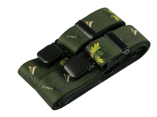 Kšandy s potiskem lesní zvěře potěší všechny myslivce. Kšandy bývají nedílnou a zároveň praktickou součástí jejich oblečení. Jsou kvalitní české výroby, elastický materiál umožňuje pohodlné nošení. Zadní vsadka z eko kůže jim dodává stylový vzhled. Ke kalhotám se upevňují na tři žabky - dvě vpředu a jednu vzadu.