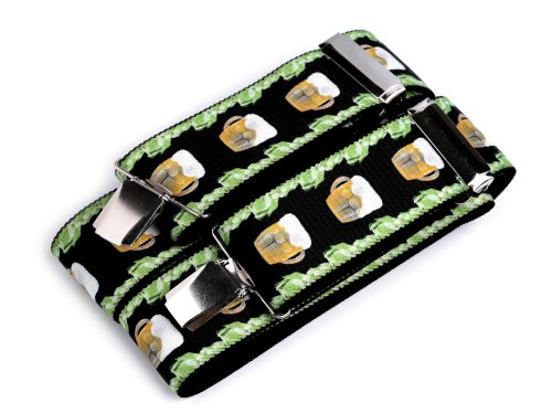 Kšandy s potiskem piva potěší především muže. Kšandy bývají nedílnou a zároveň praktickou součástí jejich oblečení. Jsou kvalitní české výroby, elastický materiál umožňuje pohodlné nošení. Zadní vsadka z eko kůže jim dodává stylový vzhled. Ke kalhotám se upevňují na tři žabky - dvě vpředu a jednu vzadu.