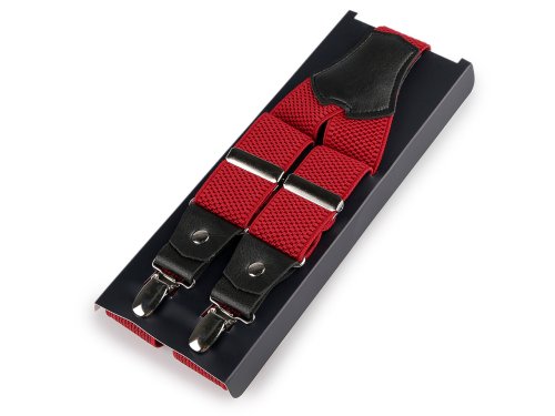 Elegantní pánské šle Angelo Bonetti jsou kvalitní české výroby. Kožené detaily jim dodávají stylový vzhled, jejich elastický materiál umožňuje pohodlné nošení. Mají čtyři žabky - dvě vpředu a dvě vzadu. Délku si můžete nastavit. Dají se použít jak pro denní nošení, tak jsou vhodné i k obleku. Můžete je nosit i k lyžařským a jiným sportovním kalhotám. Jsou kvalitní, vyrobené z polyesteru a elastanu. Mají dárkové balení v krabičce. Tyto pánské šle budou ideálním dárkem pro muže, kteří mají rádi styl.