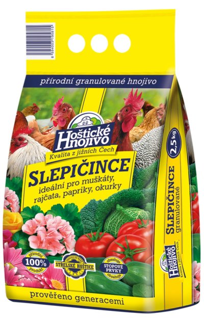 Přírodní hnojivo, které obsahuje fermentovaný slepičí trus a díky vysokému obsahu fosforu zaručuje bohaté nasazení květů a velkou úrodu. Je vhodné i k základnímu vyhnojení půdy buď na jaře, nebo při její podzimní přípravě. Hnojení se provádí na začátku vegetace (před výsadbou) v dávce 1-2 kg na 10 m2 a v průběhu vegetace (v červnu) dávkou 0,8 – 1,5 kg na 10 m2. Hnojivo se aplikuje na povrch zeminy rozhozem, mírně se zapraví do půdy a dostatečně zavlaží.