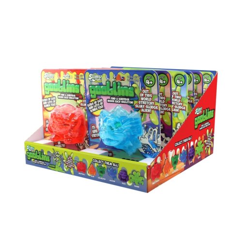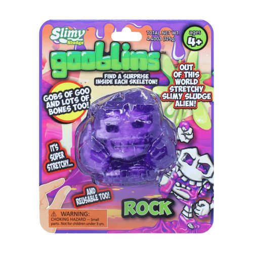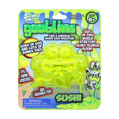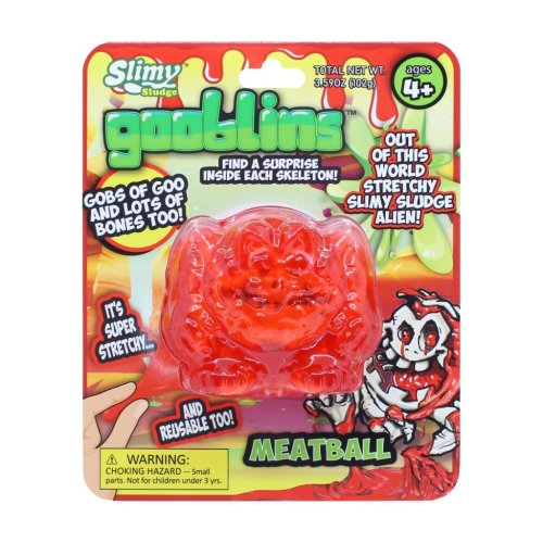 Slimy Gooblins! jsou zábavné a originální hračky určené pro děti od 4 let, které kombinují prvky slizu a překvapení. Každý Gooblin je vyroben z pružného, táhlého slizu, který je výrazně průhledný a barevný, což zaručuje vizuální atraktivitu a příjemný hmatový zážitek. Sliz má tvar různých strašidelných nebo komických postaviček, jako jsou například Sushi, Rock, Meatball, Jim Reaper nebo Blob, přičemž každá figurka má uvnitř ukrytý malý kostlivý překvapivý prvek, který děti mohou objevovat a sbírat. Tento prvek přidává hře další rozměr a podporuje dětskou zvídavost.
