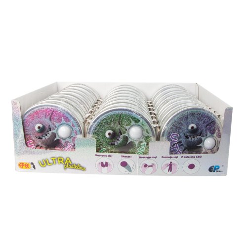 ULTRA Plastelína je unikátní hmota s výjimečnými fyzikálními vlastnostmi. Skvěle se tvaruje, natahuje jako žvýkačka, skáče jako hopík, trhá jako papír, funguje jako skvělá antistresová pomůcka. Můžete si vybrat z 6 barevných kombinací. Tato Ultraplastelína navíc obsahuje kuličku s barevným LED světlem, které při pohybu svítí a bliká. Vyrobte si svůj vlastní světelný hopík. Baterie jsou nevyměnitelné - 3xAG10 (ve výrobku). Pro děti od 3 let.