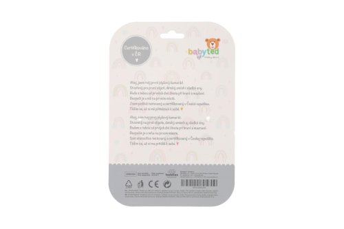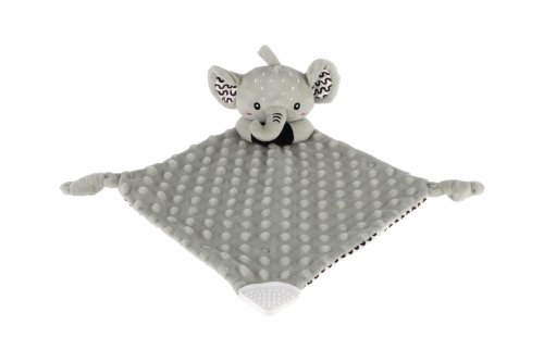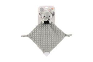 Heboučký plyšový usínáček v podobě milého sloníka je ideálním společníkem pro miminka již od narození. Vyrobený z měkoučkého minky materiálu s 3D puntíky poskytuje příjemný a uklidňující dotek, který pomáhá děťátku usínat a cítit se bezpečně. Uvnitř je ukryté jemné chrastítko, které podporuje sluchový rozvoj dítěte. Jeden z rohů je doplněn o měkké silikonové kousátko, které uleví od bolesti při prořezávání zoubků. Uzlíky na rozích navíc stimulují hmat a jsou snadno uchopitelné i pro nejmenší ručičky. Certifikováno v ČR, splňuje tak vysoké standardy bezpečnosti pro novorozence.