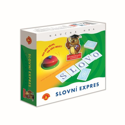 Slovní expres je napínavá slovní hra, ve které musí hráči zapojit všímavost, postřeh a slovní zásobu. Jenom ten, kdo nejrychleji sestaví slovo z písmen na kartách, a jako první bouchne do zvonku, získá odměnu. Hra udržuje vysoké herní napětí, ale je také výborným tréninkem postřehu, vnímání, kreativity myšlení a hlavně správného pravopisu. Balení obsahuje: 55 karet s písmeny zvonek návod. Počet hráčů: 2-4. Hra je vhodná pro děti od 8 let.