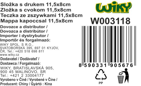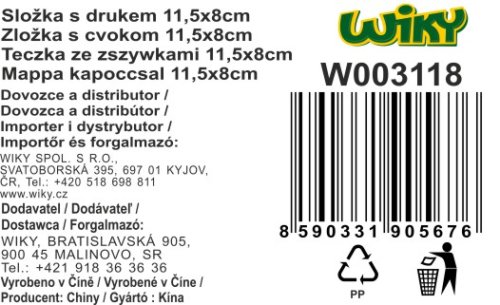 vyrobena z měkkého plastu snadno omyvatelná zapínání na druk Rozměry: 11,5 x 8 cm