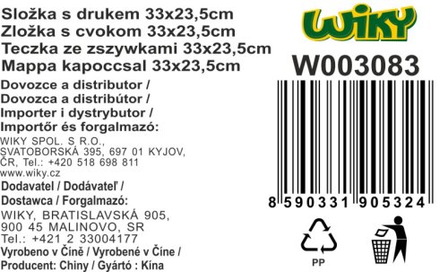 vyrobena z měkkého plastu snadno omyvatelná zapínání na druk Rozměry: 33 x 23,5 cm (C4)