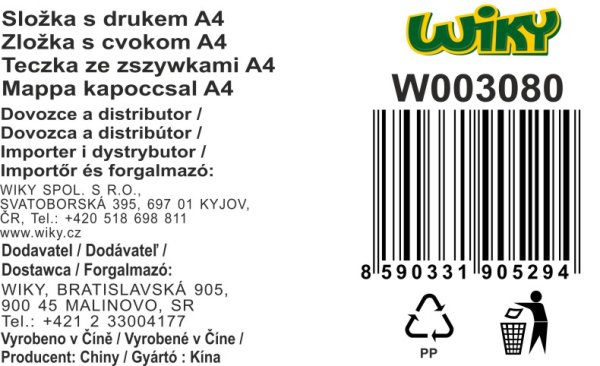 vyrobena z měkkého plastu snadno omyvatelná zapínání na druk Rozměry: formát A4