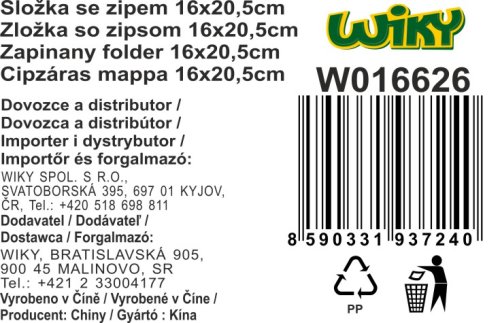 Složka se zipem 16x20,5 cm - 4 barvy