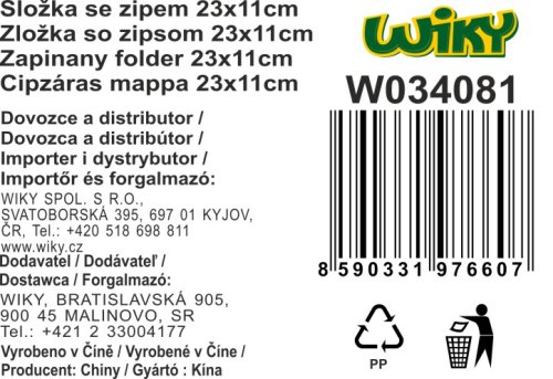 Složka se zipem 23x11 cm - Transparentní