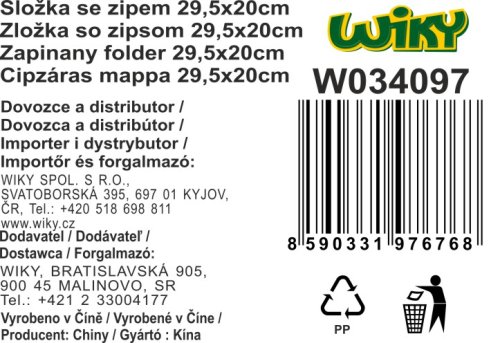 Složka se zipem 29,5x20 cm. 7 barevných provedení(červená, černá, fialová, zelená, fialová, žlutá, růžová).