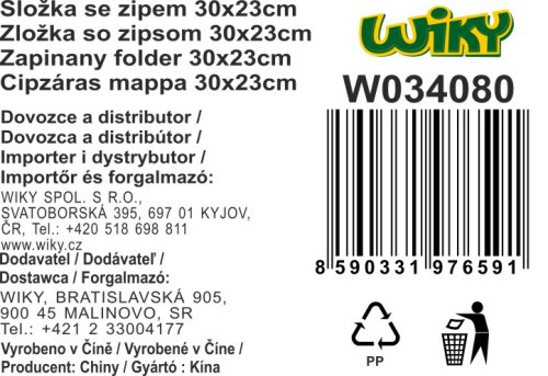 Složka se zipem o velikosti 30x23 cm. 4 barevné provedení (světle zelená, šedá, růžová, světle modrá).