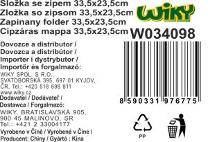 Složka se zipem 33,5x23,5 cm. 7 barevných provedení(červená, černá, fialová, zelená, fialová, žlutá, růžová).