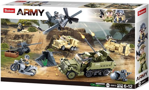 Inovativní stavebnice Sluban je možno kombinovat s podobnými stavebnicemi mnoha dalších významných výrobců. Jsou vyráběny z kvalitního, nezávadného a odolného ABS plastu. Každá stavebnice je opatřena návodem k sestavení a balena v pestře potištěné papírové krabičce. Hlavní vlastnosti:551 dílků, 5 figurekstřední obtížnostinovativní figurky s otáčivými i výkyvnými částmi tělkompatibilní se stavebnicemi dalších výrobců
