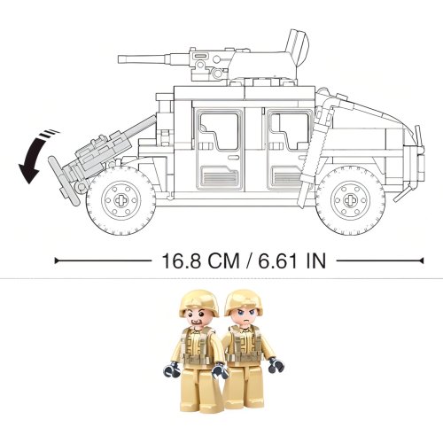 Model dobře známého vojenského vozidla s výzbrojí a dvěma mini figurkami. Hlavní vlastnosti: rozvíjí logické myšlení a jemnou motoriku dětíkompatibilita: s Lego, Cobi, Mega Blokskvalitní pevný materiál