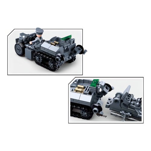 Raketomet a protiletadlové dělo, obrněné vozidlo a speciální pásová motorka mohou být vzájemně kombinovány v tento model. Pojízdná útočná jednotka je připravena k přemístění! Inovativní stavebnice Sluban je možno kombinovat s podobnými stavebnicemi mnoha dalších významných výrobců. Jsou vyráběny z kvalitního, nezávadného a odolného ABS plastu. Každá stavebnice je opatřena návodem k sestavení a balena v pestře potištěné papírové krabičce. Hlavní vlastnosti: 368 dílků a 4 figurky 2 úrovně složitosti, kombinováním sady lze sestavit velký model inovativní figurky s otáčivými i výkyvnými částmi tělkompatibilní se stavebnicemi dalších výrobců