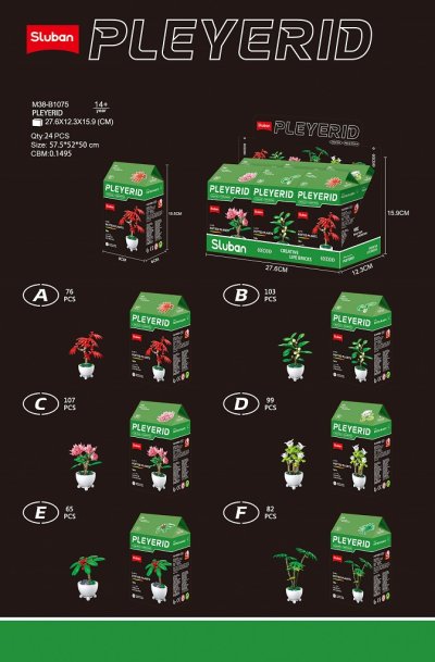 Stavebnice z řady „Potted Plants“ (rostliny v květináči) od společnosti Sluban nabízejí originální a kreativní modely rostlin a květin určené pro skládání z klasických stavebních kostek, které jsou plně kompatibilní s ostatními značkami, jako je například LEGO®. Tato rostlina připomínající palmu s červenými plody je vyrobena z odolného a bezpečného ABS plastu a podporuje rozvoj jemné motoriky, kreativity a logického myšlení. Sady jsou vhodné pro děti od 10 let i dospělé nadšence stavebnic. Modely bývají často součástí tematické kolekce s několika různými druhy rostlin, které lze kombinovat a vytvořit tak vlastní mini zahradu z kostek.Každá sada obsahuje podrobný návod k sestavení a je balena v praktické papírové krabičce. Hlavní vlastnosti: vhodné jako originální dárek nebo stylová dekoracekompatibilní s kostkami dalších výrobcůvyrobeno z bezpečného ABS plastuobsahuje návod k sestavenípodporuje kreativitu a rozvoj dovedností