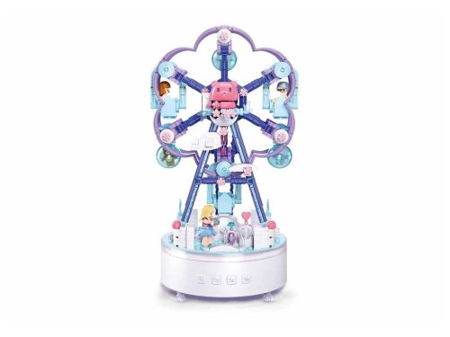 Přeneste se do dětství a vzpomeňte si, kolik zábavy jste si užili na pouti! Poskládejte si svůj vlastní kolotoč, zapněte osvětlení, zaposlouchejte se do jedné ze 13 skladeb a sledujte, jak se horní část podstavce hracího strojku otáčí v rytmu známé hudby. Můžete si vybrat z několika ukolébavek či uklidňujících skladeb. A nechybí ani narozeninová a novoroční píseň. Kolotočem je možné díky ozubeným kolečkům a řetězu točit také vertikálně. K napájení slouží 3 kusy AA baterií nebo USB kabel 5V. Inovativní stavebnice Sluban je možno kombinovat s podobnými stavebnicemi mnoha dalších významných výrobců. Jsou vyráběny z kvalitního, nezávadného a odolného ABS plastu. Každá stavebnice je opatřena návodem k sestavení a balena v pestře potištěné papírové krabičce. Hlavní vlastnosti: 620 dílků, 3 figurkyse zvukem a osvětlením13 melodiízvuk, osvětlení a otáčení lze zapnout a vypnoutkolotoč je otočný i vertikálněUSB kabel 5V nebo 3x AA baterie (baterie nejsou součástí balení)inovativní figurky s otáčivými i výkyvnými částmi tělkompatibilní se stavebnicemi dalších výrobců