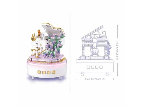 Nechte se unášet příjemnými melodiemi a užijte si láskyplnou atmosféru! Poskládejte si Piano Sonátu lásky, zapněte osvětlení, zaposlouchejte se do jedné ze 4 skladeb a sledujte, jak se tato hrací skříňka otáčí v rytmu známé hudby. Můžete si vybrat zda chcete raději uklidňující skladbu, ukolébavku nebo narozeninovou či novoroční píseň. K napájení slouží 3 kusy AA baterií, které nejsou sočástí balení nebo můžete napájet USB 5V kabelem, který je součástí balení. Inovativní stavebnice Sluban je možno kombinovat s podobnými stavebnicemi mnoha dalších významných výrobců. Jsou vyráběny z kvalitního, nezávadného a odolného ABS plastu. Každá stavebnice je opatřena návodem k sestavení a balena v pestře potištěné papírové krabičce. Hlavní vlastnosti: 503 dílků, 1 figurkase zvukem a osvětlenímregulace světla i zvuku zvuk, osvětlení a otáčení lze zapnout i vypnout4 melodieUSB kabel 5V (součástí balení) nebo 3x AA baterie (není součástí balení)inovativní figurky s otáčivými i výkyvnými částmi tělkompatibilní se stavebnicemi dalších výrobců