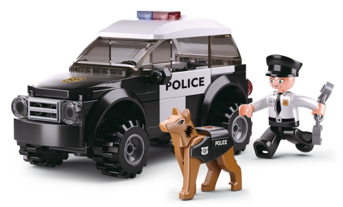 Model policejního vozu s policistou a psem ze série Sluban Police.