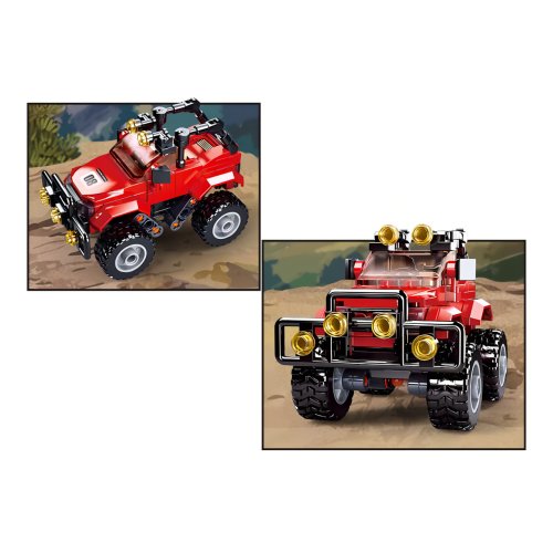 Inovativní stavebnice Sluban je možno kombinovat s podobnými stavebnicemi mnoha dalších významných výrobců. Jsou vyráběny z kvalitního, nezávadného a odolného ABS plastu. Každá stavebnice je opatřena návodem k sestavení a balena v pestře potištěné papírové krabičce. Hlavní vlastnosti:135 dílků, 1 figurkanízká obtížnostodpružené nápravyinovativní figurky s otáčivými i výkyvnými částmi tělkompatibilní se stavebnicemi dalších výrobců