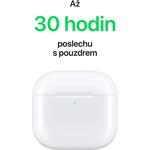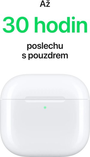 Poslouchejte hudbu, sledujte filmy nebo volejte svým známým. Sluchátka zvládnou až 4 hodiny poslechu se zapnutým aktivním potlačováním hluku. S nabíjecím pouzdrem se jejich výdrž prodlouží až na 30 hodin poslechu (bez aktivního potlačování hluku). Nabijete je pomocí USB-C kabelu, nabíječky Apple Watch nebo nabíječkou s certifikací Qi.