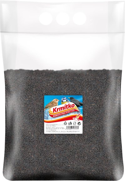 Produkt je určen především k přikrmování venkovního ptactva v nepříznivém období, zpravidla v období prosinec až únor. Obsah sáčku nasypeme v přiměřených dávkách do krmítka chráněného před sněhem. Složení: 100 procent slunečnice černá. Balení: 10 kg.