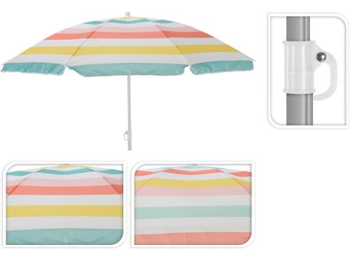 vrchní průměr: 152 cm / průměr: 142 cm průměr tyče: 26 mm materiál: polyester dekor PROUŽKY mix barev: bílá / žlutá, červená, modrá, zelená