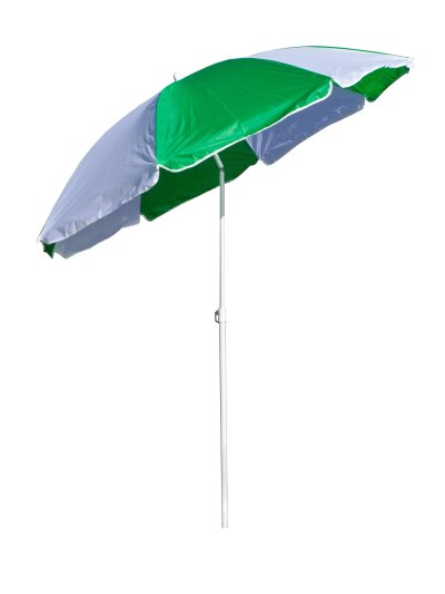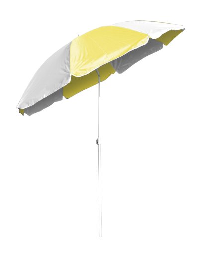 Plážový slunečník s praktickým kloubem má kovovou konstrukci v bílé barvě. Kovová tyč je zakončena plastovým hrotem. Slunečník je dodáván v mixu barev.