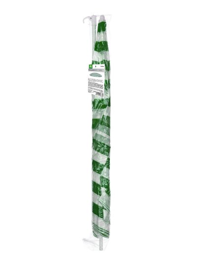 Plážový slunečník má kovovou konstrukci. Tyč je zakončena plastovým hrotem. Slunečník je dodáván v zelené barvě s bílými pruhy.