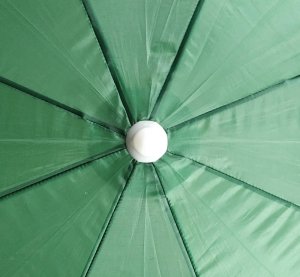 Slunečník s boční stěnou chránící proti bočnímu větru má kovovou konstrukci s 8 žebry o síle 3,8b mm v bílé barvě, potahová látka - 170T polyester. Boční stěna se dvěma praktickými okny pro snažší rozhled do stran je upevněna k horní části slunečníku oboustranným zipem pro snadnou a rychlou montáž či demontáž. Slunečník je vybaven nosnou tyčí o průměru 25 / 22 mm s naklápěcí funkcí, 8 pevnými očky, zemními kolíky a lanky, pro pevnější stabilizaci v případě nepříznivého počasí. Slunečník je dodáván v zelené barvě a je neocenitelným pomocníkem nejen pro rybáře ale díky zástěně je možno jej používat jako praktický přístřešek na pláži či na zahradě.