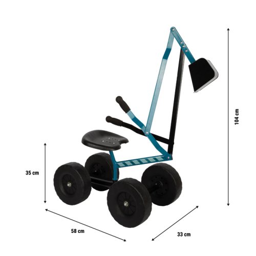 Dětský bagr s otočnou konstrukcí o 360° nabízí realistickou herní zábavu bez kompromisů. Robustní bagrová lžíce se ovládá pomocí dvou pák, které dětem umožňují snadno nabírat, zvedat a vyklápět písek i drobné poklady. Pevný kovový rám je navržen pro zatížení až 50 kg a doplněn pohodlným plastovým sedátkem. Díky velkým kolům o průměru 20 cm je bagr snadno pojízdný a děti s ním mohou samostatně manévrovat po pískovišti i zahradě. Bagr vnáší do hry autentickou atmosféru staveniště a motivuje děti k aktivní hře venku. Podporuje rozvoj hrubé motoriky, koordinace pohybů i prostorové představivosti a zároveň stimuluje kreativitu a fantazii. Ergonomicky tvarované rukojeti jsou přizpůsobené malým dětským rukám a usnadňují ovládání. Díky realistickým funkcím si malí stavebníci mohou hravě vyzkoušet kopání, zvedání i vyklápění téměř jako skuteční profesionálové. Hodiny zábavy na čerstvém vzduchu jsou zaručeny. Hlavní vlastnosti: konstrukce otočná o 360° pro maximální mobilitu pohyblivá lopata rýpadla, která se ovládá dvěma páčkami (funkce uchopení a vysypání)robustní kovový rám, nosnost až 50 kgergonomicky tvarované rukojetipodporuje motoricke dovednosti, koordinaci ruka-oko a povzbuzuje k hraníideální na zahradu a pískovištěvyrobeno v Německu