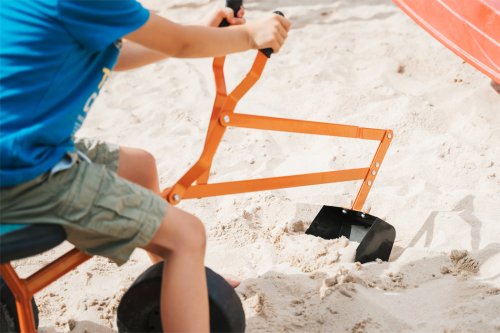 Bagr z kovu s velkými koly z umělé hmoty (Ø 20 cm) je hitem pro malé stavitele. Je otočný o 360°, má pohodlné sedadlo (výška sedadla 35 cm), je stabilní a zároveň lehký. Tento bagr je ideální hračkou na každém pískovišti. Hlavní vlastnosti: pohyblivá lopata rýpadla, která se ovládá dvěma páčkami (funkce uchopení a vysypání) kvalitní a bezpečné pro dětskou bezstarostnou hru vyrobeno v Německu