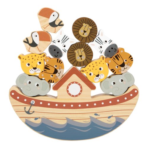Vybalancujete vratkou archu a zachráníte před potopou všechna zvířátka? Házejte kostkou a ukládejte dílky příslušných barev s motivy roztomilých zvířat na základnu v podobě rozhoupané lodi. Rozvíjejte hrou koordinaci rukou a zraku či trpělivost. Hračka je velmi robustní a odolná, vyrobená z masivního dřeva a vyvedená v atraktivním barevném schématu produktové řady Small Foot Safari. Hlavní vlastnosti:základna, 12 herních dílků a hrací kostkaodolné provedení z masivního dřeva