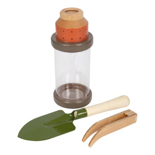 Pro milovníky dobrodružství! Tento odolný batoh se stane ideálním společníkem na cestách přírodou. Vejde se do něj pohodlně všechno vybavení: nádoba na hmyz se šroubovacím víčkem a integrovanou lupou, dřevěný dalekohled, síť na hmyz s teleskopickou tyčkou, kompas na šňůrce, lupa, pinzeta, lopatka, karabina. Na batohu je praktické, že jej lze díky zipu otevřít dokořán, má nastavitelné ramenní popruhy a mnoho poutek, na která můžete zavěsit vybavení.Děti si s ním užijí výlety, výšlapy, expedice, za pomocí vybavení mohou bádat a objevovat nové věci na zahradě, v lese nebo na louce. Viditelné dřevo, zaoblené hrany a barvy přírody, to jsou hračky z řady „Discover“. Hlavní vlastnosti: odolný batoh pro mladé průzkumníky s poutkynastavitelné ramenní popruhyv balení průzkumné vybavenínádoba na hmyz s víčkemsíť na motýly lze upevnit k batohubatoh má široký ziphezký design a zaoblené hranyhodí se k ostatním produktům z řady „Discover“