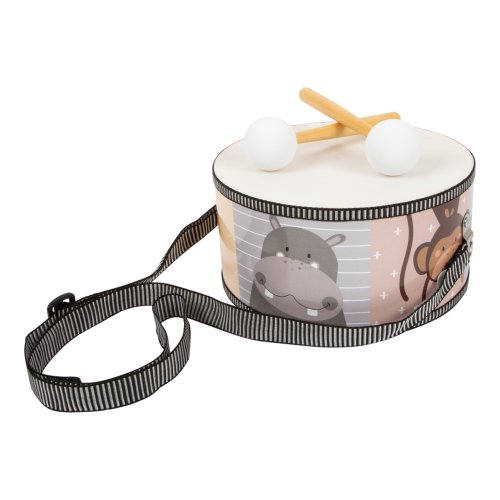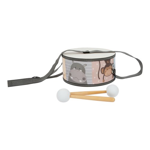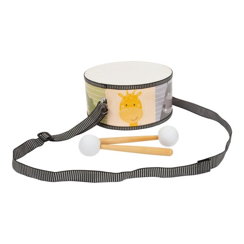 V rytmech divočiny! S bubínkem dekorovaným zvířátky ze safari mohou děti získat své první hudební zkušenosti. Je dodáván s dvojicí paliček s pěnovými zakončeními pro příjemný zvuk vzbuzující veselou náladu. Díky praktickému, nastavitelnému popruhu s ním děti mohou vyrazit na pochod. Popruh je pro větší bezpečnost a pohodlné odepínání vybaven zapínáním na suchý zip. Svou barevností a motivy se hravě stane ozdobou každého dětského pokoje. Hlavní vlastnosti:bubínek a 2 paličkynastavitelný popruh